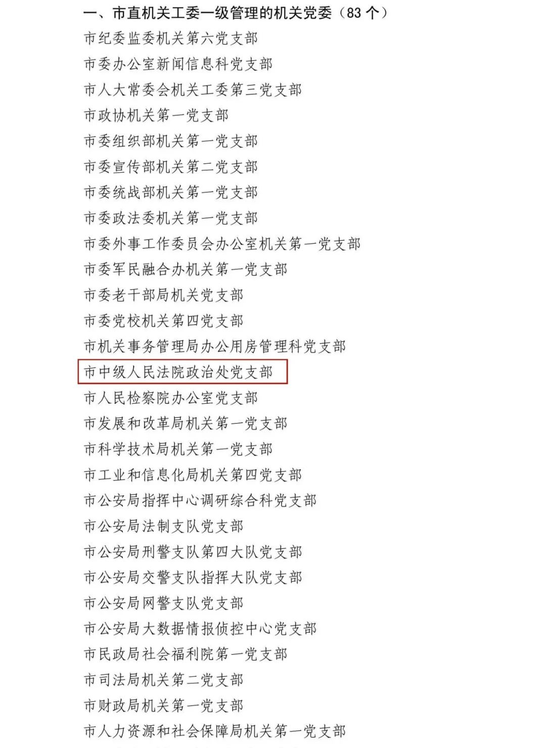 喜报!市中院政治处党支部被命名为市直机关“四强”党支部