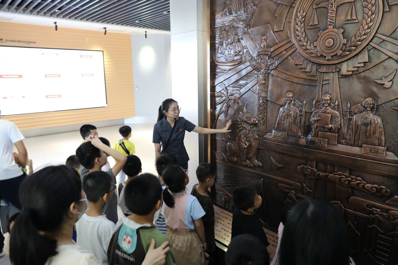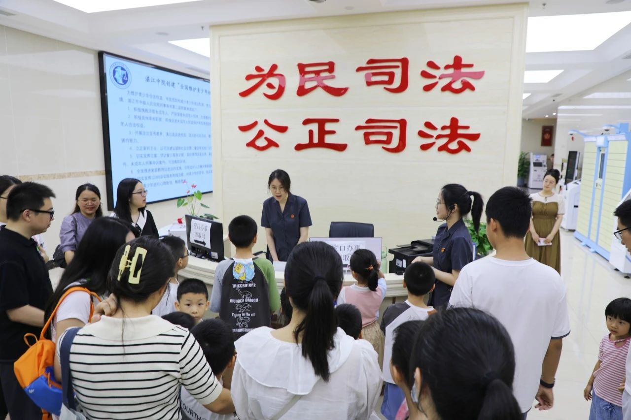 5月25日,湛江中院迎来第一批参观者——湛江市委组织部、市直工委家属及小朋友,“零距离”了解法院工作,“沉浸式”体验法院文化,深刻体会司法的庄严和神圣。 第一站——诉讼服务中心 “大家好!欢迎大家来到湛江市中级人民法院,今天的第一站,是我们的诉讼服务中心……” 在诉讼服务中心,讲解员用通俗易懂的语言为参观人员介绍了法院立案流程和诉讼服务便民利民措施,参观人员体验了诉讼自助智能设施,感受了司法设施的高效便捷。 第二站——审判庭 “请全体起立,请审判长和审判员入庭!”在审判庭,参观人员们身临其境感受了一场震撼庄严的模拟宣判,随后讲解员详细讲解了国徽、法徽、天平椅、法袍、法槌的意义和审判法庭的基本构成,参观人员亲身体验到了法院的庄重、法庭的威严。 第三站——院史馆、党建活动阵地 “这里是展示我们法院历史变迁的地方。”在这一站,讲解员通过介绍湛江中院建设史、法院制服变迁史、党建活动、党员风采等,充分展现了湛江中院的丰富文化建设成果,让参观人员实地感受法院文化。 第四站——法警演练 “后退,不要再靠近,否则将对你使用警械!”法警为参观人员演示了单警装备及其他警用器械的使用方法,介绍了法警工作中必备的一些技能,并邀请小参观员亲身体验警械装备的操作。小参观员争先恐后围拢观看,现场气氛热烈。 第五站——法官微课堂 “大家知不知道自己过年的压岁钱是归属于谁的呀?”周冰清法官通过互动问答的方式,向参观人员讲解了未成年人权益保护、校园欺凌、高空抛物、防拐防骗等法律知识,引导大家认真学好法律知识,增强辨别是非能力,合法保护自己权益。 “感谢湛江中院用心为我们组织这场活动,孩子们和家长都学到了很多法律知识,收获满满。”家长对这次活动表示肯定。 “回去我要好好学习,长大后,我也要成为一名法官!”小参观员纷纷表示。