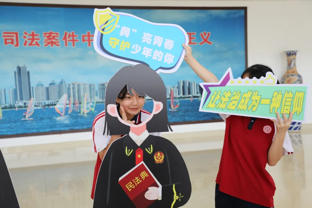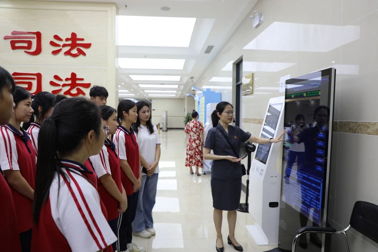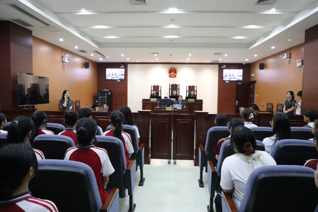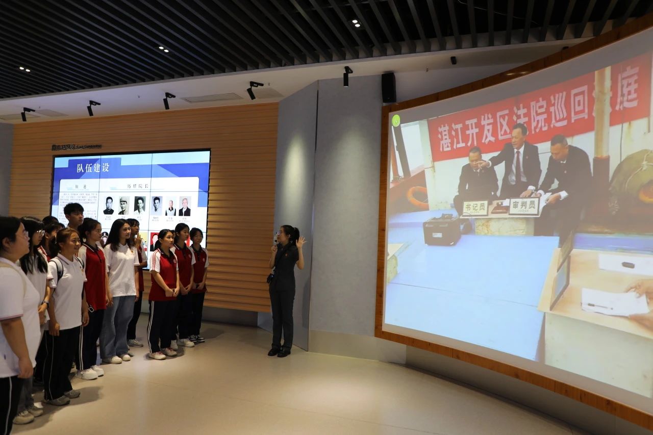 为进一步推动司法公开,切实增强未成年人法治意识,护航未成年人健康成长,在全社会营造学法、尊法、守法、用法的良好法治氛围,在国际六一儿童节来临之际,湛江中院精心组织、用心筹备了主题为“植‘法治种子’,护‘苗’成长”开放日系列活动,邀请机关单位家属及小朋友、小学生、中学生、中职学生分四批参观法院。 “以前觉得法律是书本上的知识,现在深刻感受到了法庭的神圣与庄严,对法律更加敬畏,以后要做一个更加遵纪守法的好学生。” 5月31日,他们来了。 湛江科技学院以及湛江中医学校50余名师生共同走进湛江中院,先后参观了诉讼服务中心、审判庭、院史馆、文化长廊和党建活动中心,零距离观摩法院日常工作、沉浸式了解法院文化、全方位树牢法治理念。 在普法微课堂,湛江中医学校法治副校长陈小媚以《让青春不留阴霾——向校园欺凌说“不”》为主题,结合典型案例,通过漫画、视频等形式向同学们详细讲解了什么是校园欺凌、校园欺凌可能触犯的法律以及校园欺凌的预防和应对,并就民法典中与同学们学习生活中息息相关的知识点进行深入浅出的讲解。同学们聚精会神听讲,踊跃举手发言,现场气氛热烈活跃。 “今天的开放日活动很有意义,通过让同学们“亲身、亲历”参观法院,可以在增强法律意识的同时引导他们树立正确的人生观和价值观,真正做到学法、懂法、守法、用法。”在场老师表示。