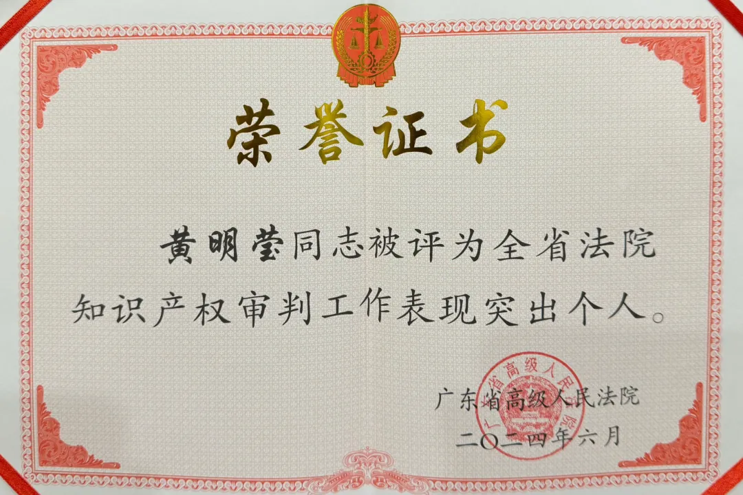 近日,广东省高级人民法院在广州召开全省法院知识产权审判工作会议,通报表扬了知识产权审判工作表现突出的8个集体和14名个人。湛江市麻章区人民法院综合审判庭副庭长黄明莹荣获全省法院知识产权审判工作表现突出个人。